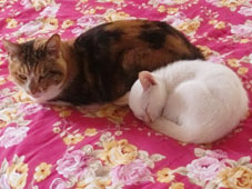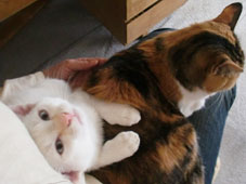 ナゴにまとわりついて、離れないミルちゃん。